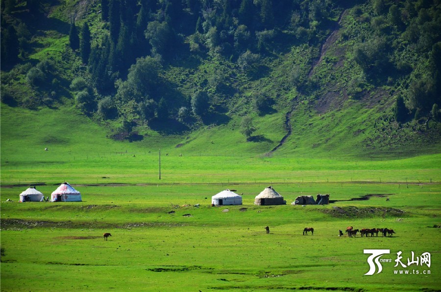盛夏尼勒克县唐布拉百里“绿地毯”绝美无比