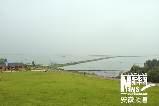 除了欣赏草原的自然风光,你还能在这里愉快地玩耍。岸上草原运营负责人余斌告诉新华网安徽频道记者,目前草原上主要的娱乐活动有滑草场、热气球和平衡车,深受游客的喜欢。