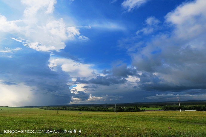 这组图片是自驾去呼伦贝尔的路上两三个小时之间拍的草原风云变幻的天空。夏季的天,孩子的脸,说变就变。这一路上经历了几场暴雨,在这东边日出西边雨的变幻中,惊叹于如诗般的云,竟然变幻出多姿多彩的美丽,令人感叹。它绝对不是草原上最美的天空,但它在很短的时间内展示出的不同姿态的美,让我沉醉,并且难忘。(冰城馨子)