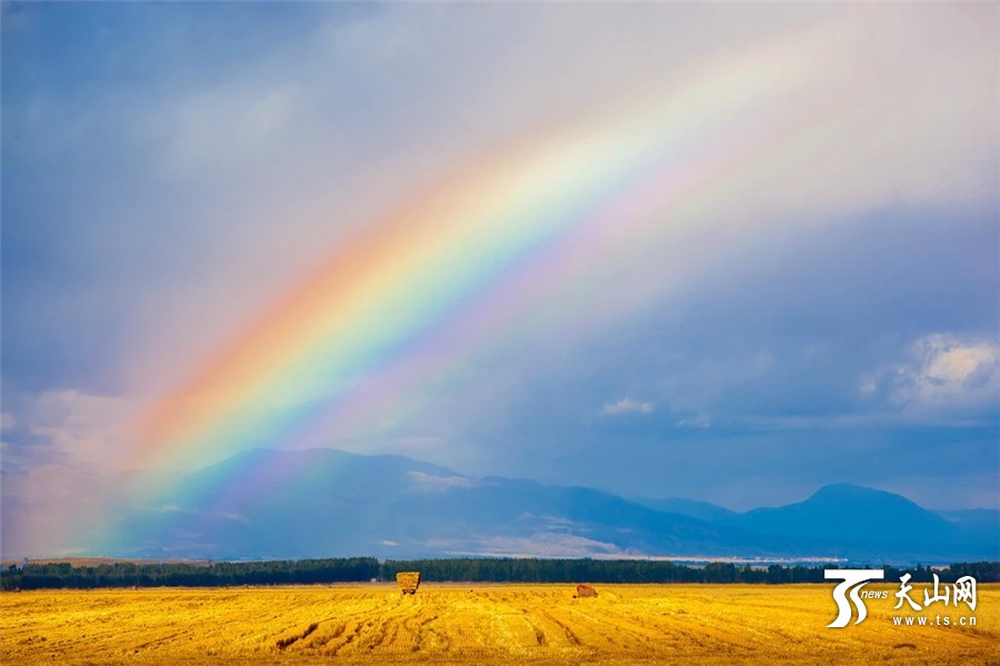 金秋九月,新疆昭苏县广袤无垠的麦田和草原上处处都能看到忙碌的身影。在落日余辉的映衬下,昭苏麦田美如画。在落日余辉的映衬下,昭苏麦田美如画。