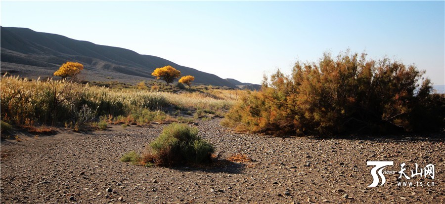 在新疆托克逊县戈壁腹地有一条小峡谷,里面生长着稀疏的胡杨,也许是在戈壁中生长,冠叶依然挺拔,在戈壁荒滩中成为了一道独有的秋色。