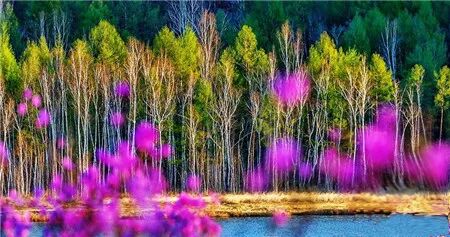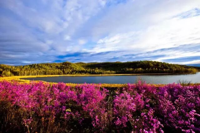 “达尔滨罗”是鄂伦春语,意为“小湖泊”,位于呼伦贝尔市鄂伦春旗境内诺敏河和毕拉河流域中上游的达尔滨罗正是一个小小的湖泊,一个火山堰塞湖。湖周森林密布,湖水清灵碧透,倒映着澄澈的天,天空中低矮的云,偶尔飞过的鸟,跟随云影流动的日光洒在湖面,一波又一波的晶莹。每逢五月,达尔滨罗湖边会开满杜鹃,火红绚烂如云霞,立身湖边,视线穿过杜鹃海,掠过微光的湖面,到达对岸的密林,视线被绿色收走,吸进风动长林的深处。