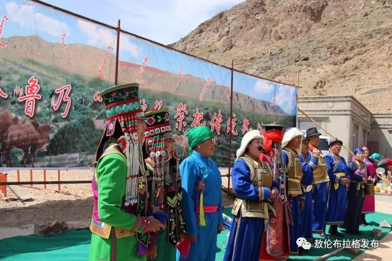 敖伦布拉格“神驼”祭祀传统民俗节源于民间敖包祭祀活动。每年的农历二月十五日,人们从四面八方自发汇聚到哈鲁乃山下的儿驼庙,集中进行祭火、煨桑、诵经、吹法号、击法鼓、祈愿、挂经幡、转敖包等一系列仪式,祈拜山崖上一处由岩斑自然形成的骆驼肖像,祈祷“神驼” 护佑,风调雨顺,五畜兴旺。