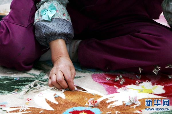 “我们的地毯展品从最初的手工编织藏毯,逐渐开发延伸到机织地毯、手工枪刺地毯、荧光毯等,不断创新的地毯品类赢得了国内外客商的青睐。”公司董事长薛婷介绍。