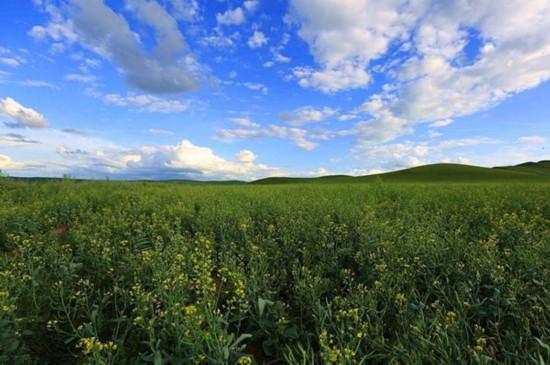 站在观景台,平静的水面倒映着蓝天,河流弯弯曲曲伸向远方,草原、白云、蓝天、牛羊,令人流连忘返,痴情于这片内蒙古大草原的纯美净土。远处,三五个游客身着蒙古族服装,走进曾经的电影《狼图腾》拍摄景观区,真正做了一次蒙古人。