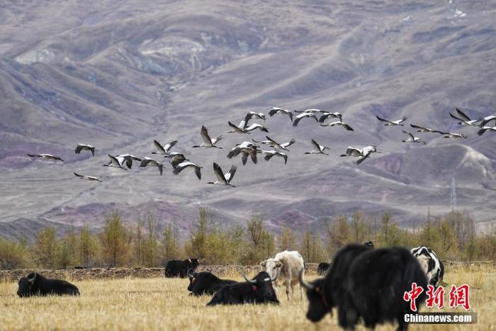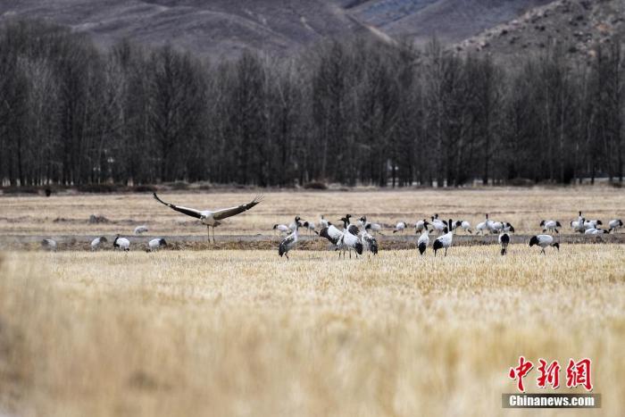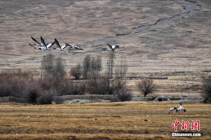11月16日,黑颈鹤飞抵拉萨河谷越冬。黑颈鹤是高原特有鹤类,国家一级重点保护野生动物,西藏是世界上最大的黑颈鹤越冬和繁衍地,每年冬季,大批黑颈鹤从藏北高原迁徙到西藏中、南部河谷地带越冬,它们在河谷、农田、沼泽地里觅食嬉戏,享受冬日暖阳 。