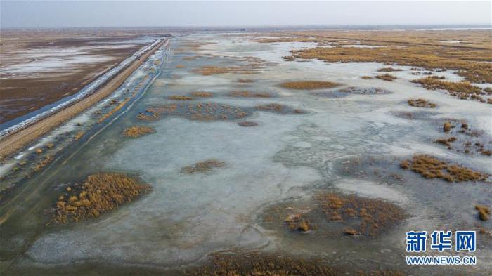 3月18日无人机拍摄的乌梁素海(摄影:彭源)