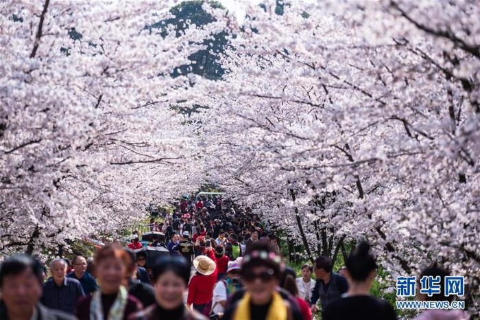 3月19日,游客在贵州省贵安新区樱花观光园游玩(摄影:陶亮)