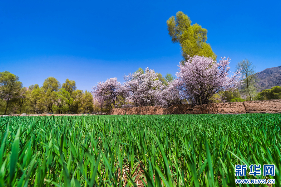 走进贵德县尕让乡松巴村的松巴藏寨,麦苗初生,梨花绽放,处处洋溢着春天的气息(摄影:黄宁)