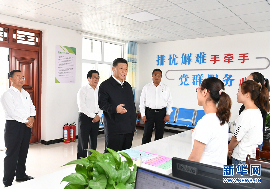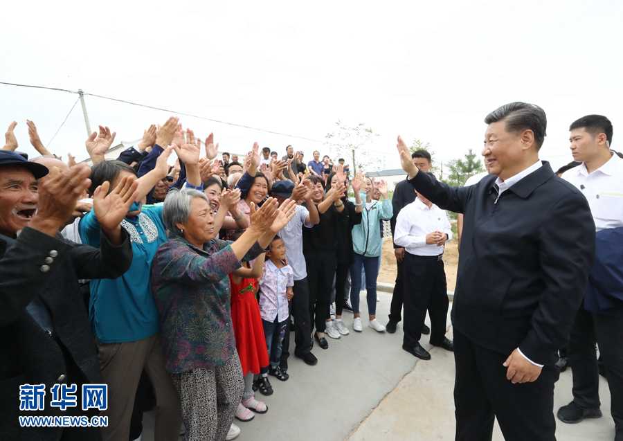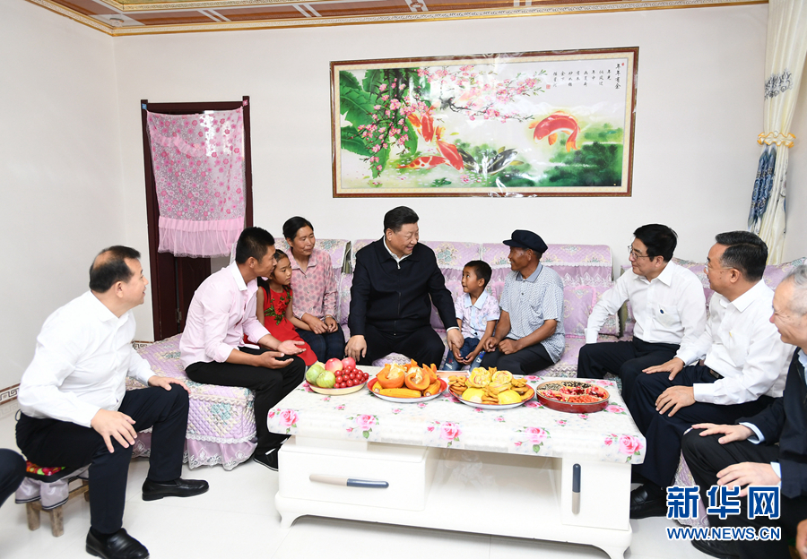 这是习近平来到武威市古浪县黄花滩生态移民区富民新村,了解易地搬迁群众生产生活及脱贫致富情况(摄影:谢环驰)