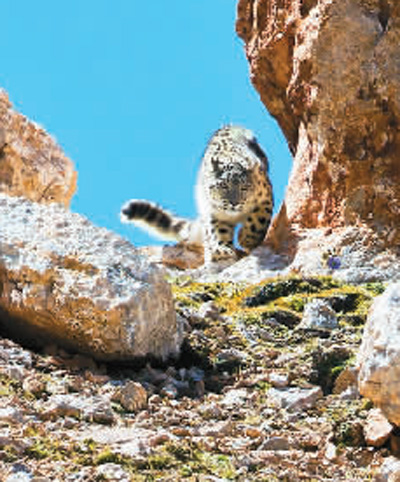 三江源国家公园里的雪豹。雪豹的生存发展代表着三江源陆生生态系统的健康状况(三江源国家公园管理局提供)