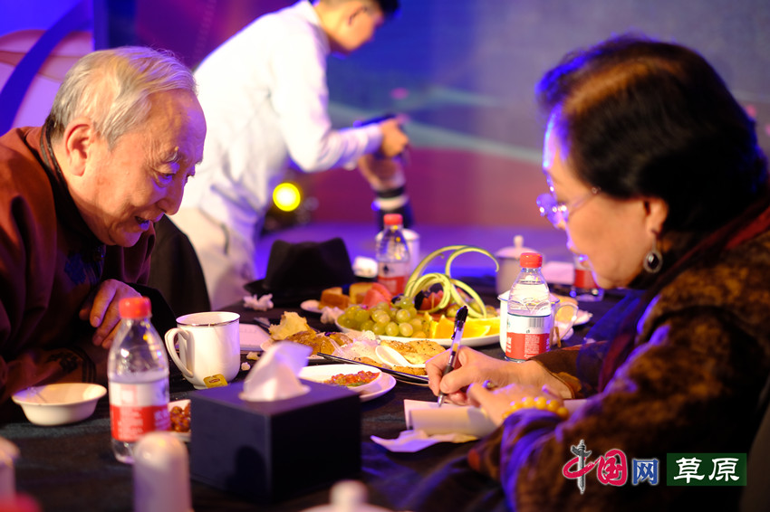 联欢会上,世界马头琴大师齐•宝力高用马头琴拉起了《赞歌》,把现场气氛推向高潮,并将一把集合了斯琴高娃等草原文化大家签名的马头琴赠送给了一位正在学习马头琴的小朋友,希望他所代表的少年一代,将马头琴艺术传承下去,发扬光大。