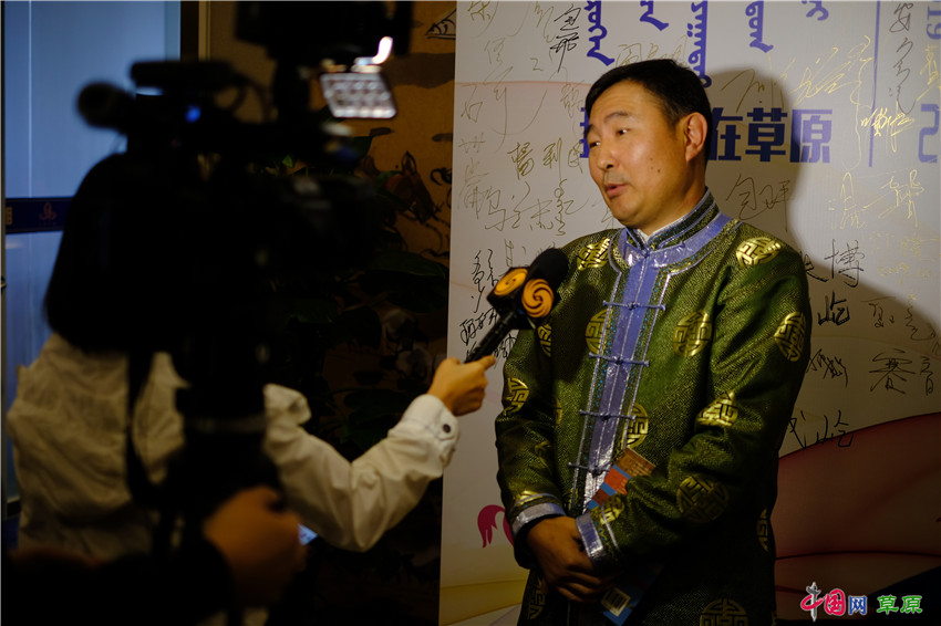 内蒙古自治区党委宣传部副部长、电影局局长乌恩奇现场接受采访