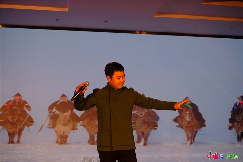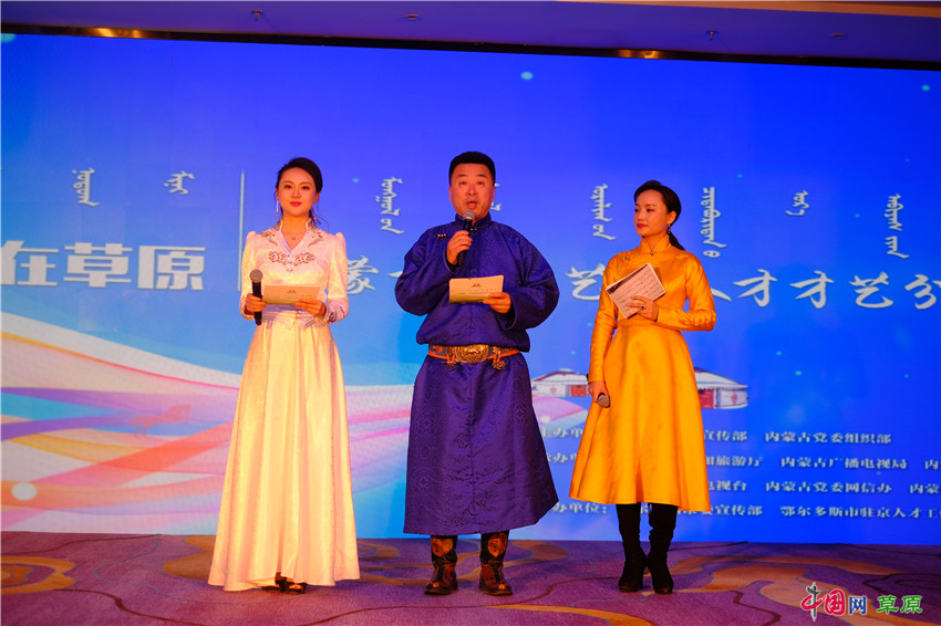 联欢会上,央视新闻频道纳森、央视网黄鹤、蒙古族青年歌手乌英嘎(蒙古语)担任主持人