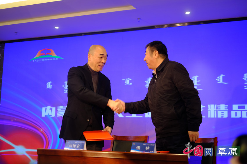 内蒙古电影集团分别与北京华录百纳影视公司、北京博纳影视公司签署电视剧《库布其》、电影《人民情怀》合作协议。会上还专题发布了《内蒙古自治区重大主题文艺精品创作指导意见》,征集、遴选、评审出了第一批创作项目。