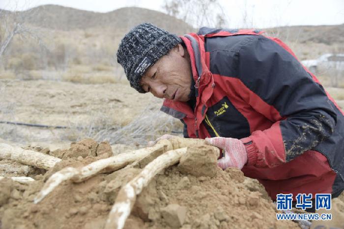 大铁锨、小铁铲、镐头……大小农具齐“招呼”,天虽冷,但豆大的汗珠已爬满农民贾科祖的额头。他拿着从土里刨出的一根长约1米的肉苁蓉,小心拭去表面的泥土,咧嘴笑了起来。