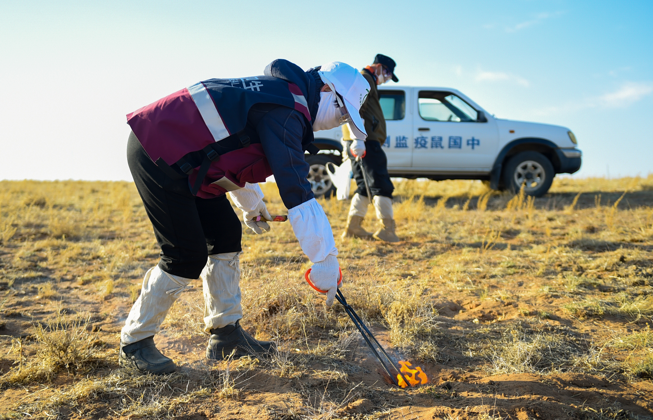 内蒙古锡林郭勒盟苏尼特右旗林业和草原局与当地疾病预防控制中心联合开展春季草原灭鼠活动,通过布设鼠夹、投放灭鼠烟炮、出动大型机械喷撒灭鼠毒饵等方式,已实现草原灭鼠面积61.52万亩。
