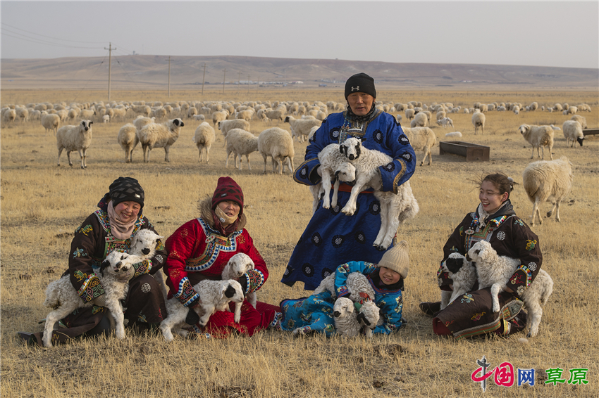 2020年4月15日,牧民道·斯琴巴特(右一)与家人在牧场合影