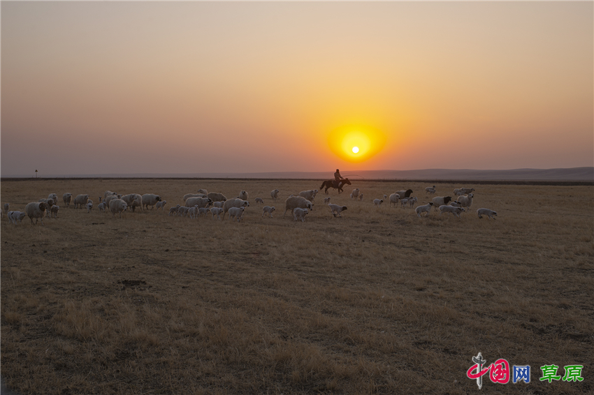 夕阳西下,牧民道·斯琴巴特赶羊回家