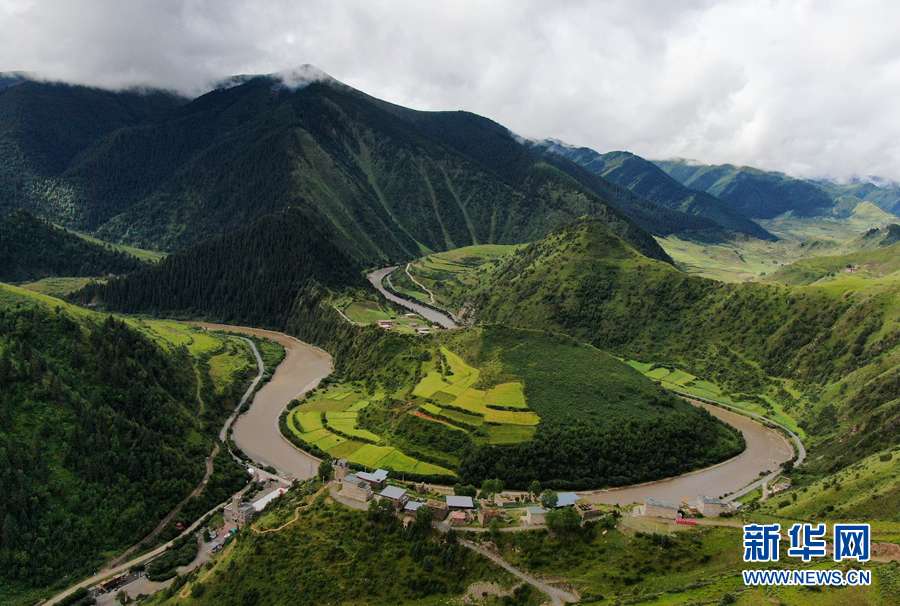 在青海省果洛藏族自治州班玛县境内拍摄的玛可河(无人机照片,摄影:新华社记者 张龙)