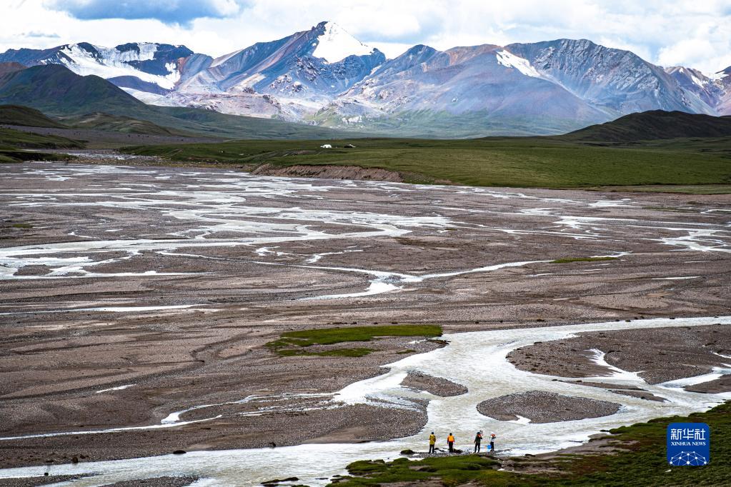 来自长江科学院的科考队员在长江源区进行科考工作(2022年7月26日摄,无人机照片,摄影:新华社记者 肖艺九)