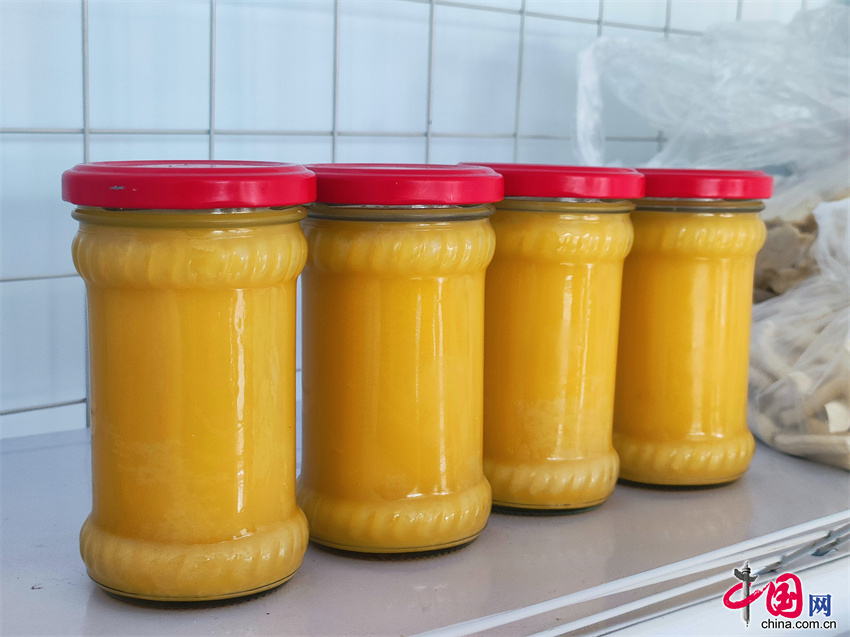 2022年,那顺乌日他主动申请了库伦旗2022年奶畜养殖场饲草料收储补贴项目,经相关部门现场核实,养殖场符合补贴标准。有了好政策的加持,青梅和那顺乌日他撸起袖子加油干,先后投资10万元改造了养殖场、建起了标准化作坊。那顺乌日他边带我们参观作坊边说:“去年有了属于自己的标准化作坊和门店。以前都是在自己家卖,销售额远不如现在,多亏有这么好的政策。接下来,我们还要发展线上销售,线上线下齐头并进,让咱库伦的奶制品越来越火!”