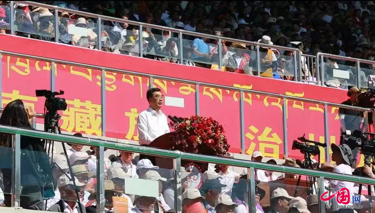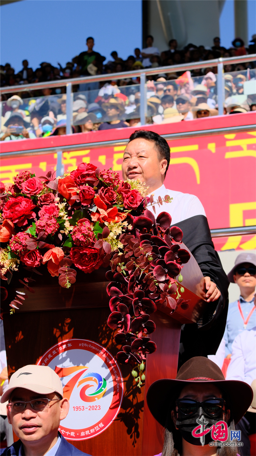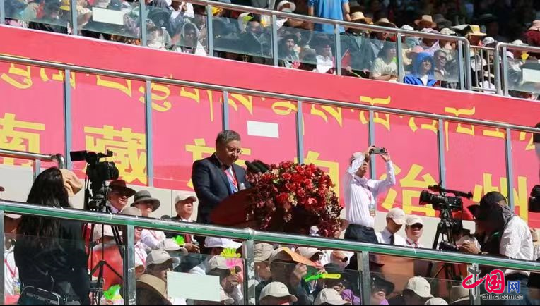 中央有关部门祝贺团、青海省党政军代表团,对口援助地区和单位、兄弟市州代表,以及来自全国各地的嘉宾、游客共同参加了庆祝大会。