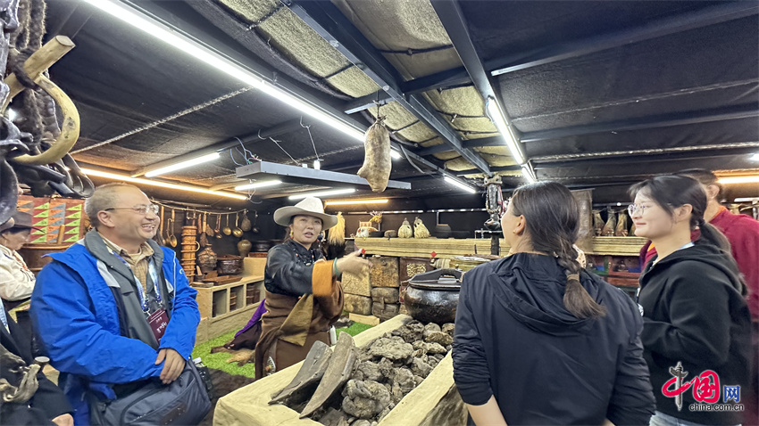 闭幕式当天,格萨尔文化(果洛)论坛专家学者参观了久治县铸牢中华民族共同体意识教育基地,并调研了让窝滩格萨尔民俗文化。