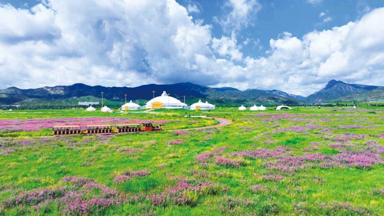 一望无际的斜茎黄芪像大自然写的散文诗,引来众多游客打卡拍照