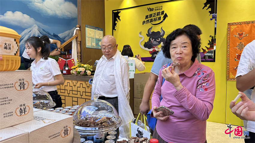 据店长李丽丽介绍,体验店揭幕首日销售情况喜人,线下销售额达1万多元,线上也售出了几千元的牛肉干产品。她表示,目前店内出售的枸杞、蕨麻、青稞饼干等产品都很受顾客欢迎,“有些上了年纪的老太太看到我们的奶酪、奶贝等零食配料表很干净,也会选择买给孙子吃”。