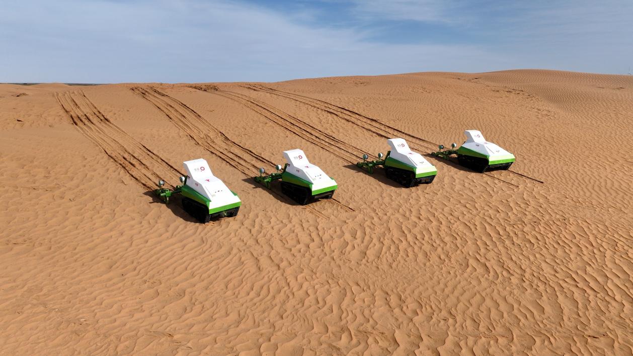 种子绳播种机器人能减少播量,提高治沙效率,在各个沙地应用成效良好