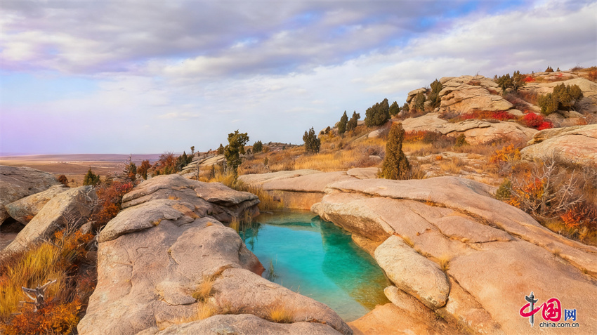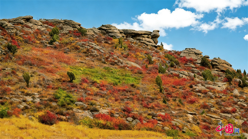 初秋时节,秋风送爽,位于内蒙古锡林郭勒盟镶黄旗的鸿格尔乌拉自然保护区褪去了夏日的满目苍翠,披上秋日盛装。秋草黄、秋叶红、秋水碧,在嶙峋的奇石和清澈的蓝天映衬下更显妩媚。