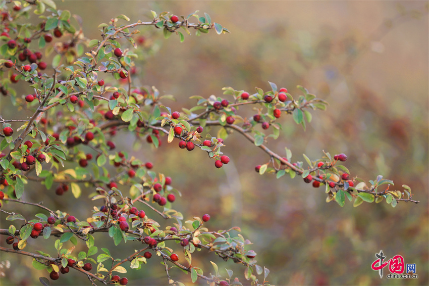 走进秋日鸿格尔乌拉,曾经翠绿的杜松林晕开深浅不一的金黄,松针簌簌落在嶙峋怪石上,为灰褐色的岩石镶上一层鎏金,风里满是松针的香气。小叶锦鸡儿的枝叶染上醇厚的橙红,与山葡萄藤蔓上一串串紫黑的果实相映,像打翻了秋日的胭脂盒。漫山遍野的沙蒿、沙棘也褪去青绿,化作深浅交错的黄,从山脚向山顶铺展,与远处浑善达克沙地的秋景连成一片。风掠过沙丘时,卷起的沙粒与枝头摇曳的彩叶相映,让这片土地既有秋日的厚重,又藏着灵动的野趣。