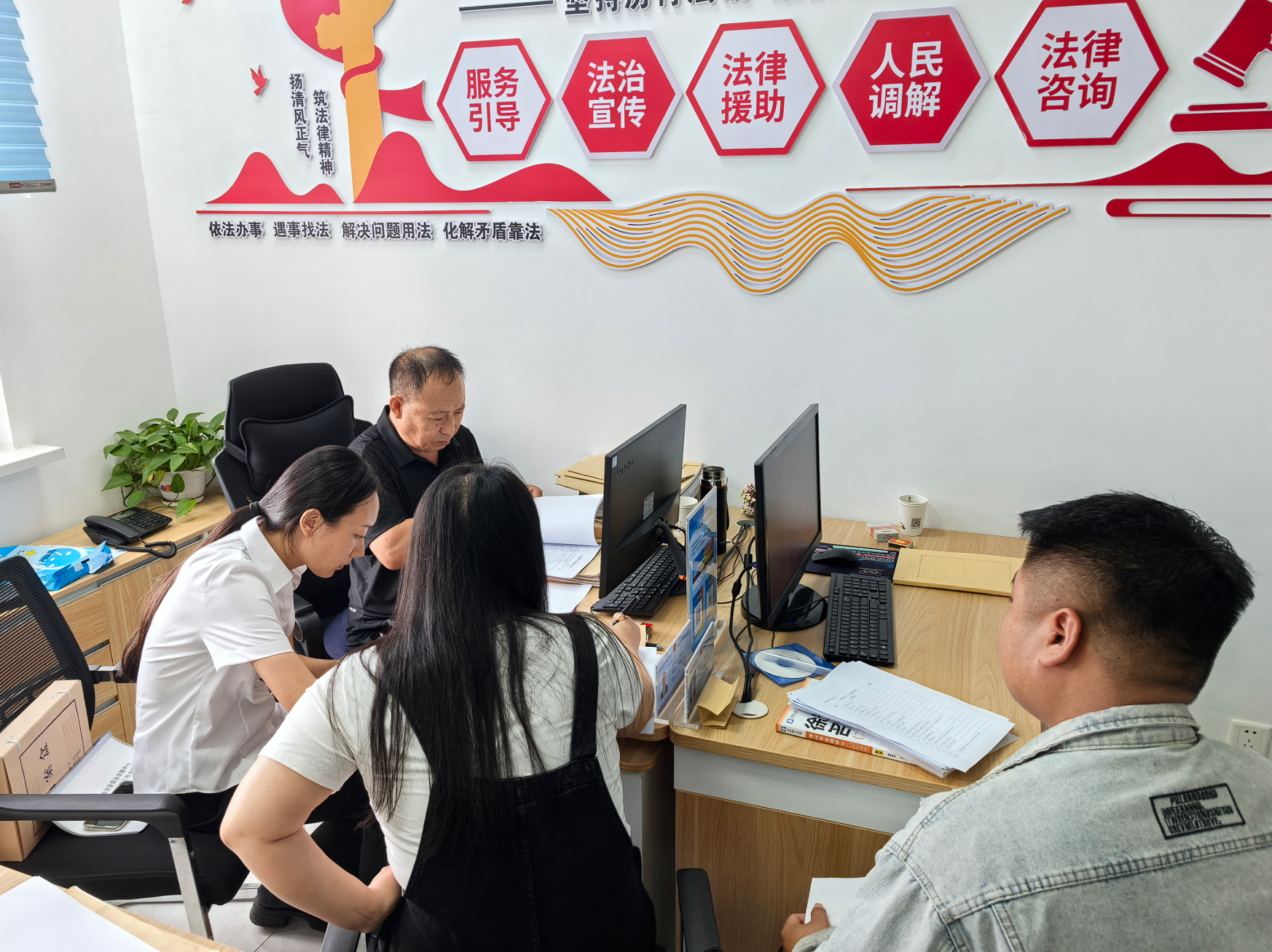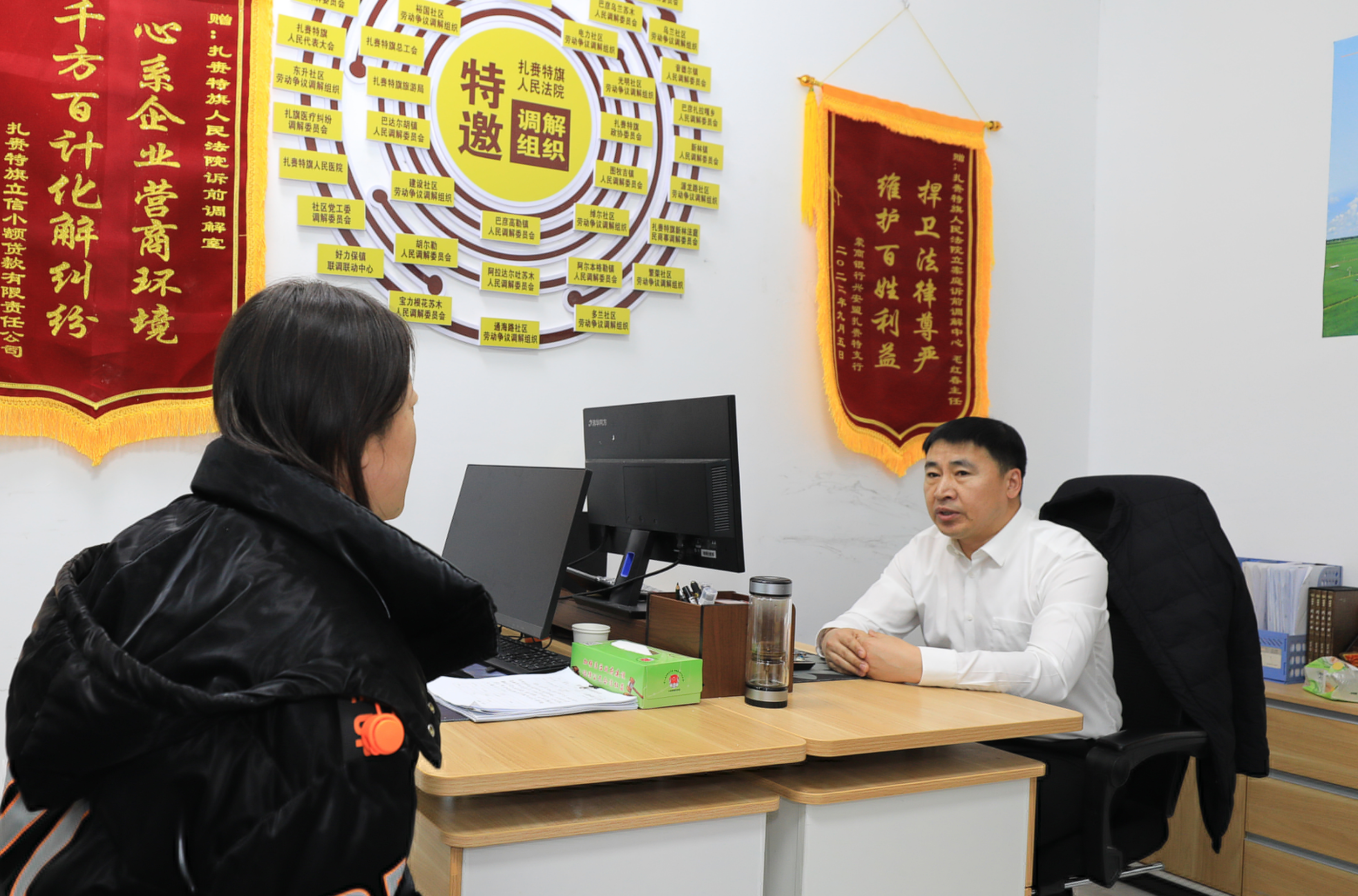 扎赉特旗巴彦高勒镇综治中心工作人员为群众调解经济类矛盾纠纷