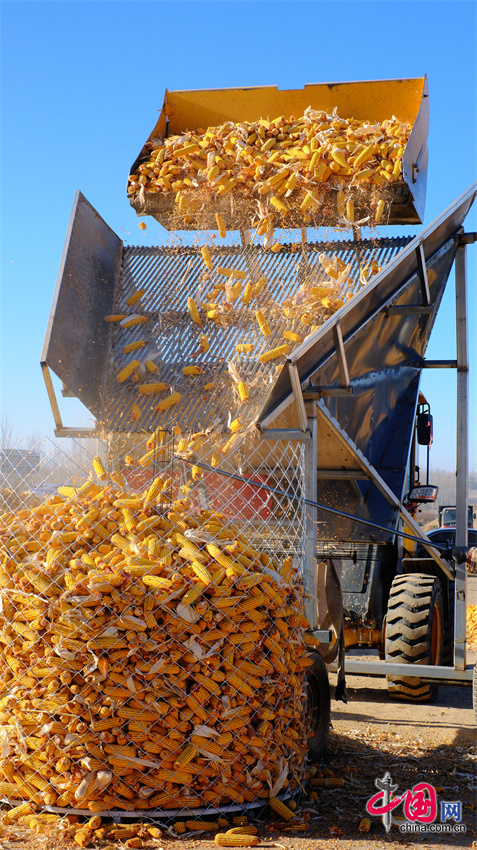 “今年秋收一结束,我们就忙着把玉米往‘楼’里运。”兴牧嘎查党支部书记单继奎指着集中储粮点内忙碌的铲车介绍。为了让“玉米楼”发挥最大效用,嘎查还发扬“工匠精神”,自制改良了“过筛神器”,确保入“楼”的玉米棒干净完整。目前,兴牧嘎查60%的玉米已入住这些“黄金屋”,集中储粮点成了秋收后最热闹的地方,农户们时常来“探望”,伸手摸一摸那实实在在的收成,心里满是踏实。这种“春种秋粮夏定仓”的新农事节奏,已在嘎查蔚然成风。曾经废弃的矿坑,化身热闹的“金码头”,去年因集中储粮、品质优良,粮贩卡车排队等候,价格硬是比传统的“地趴粮”每斤高出好几分钱。