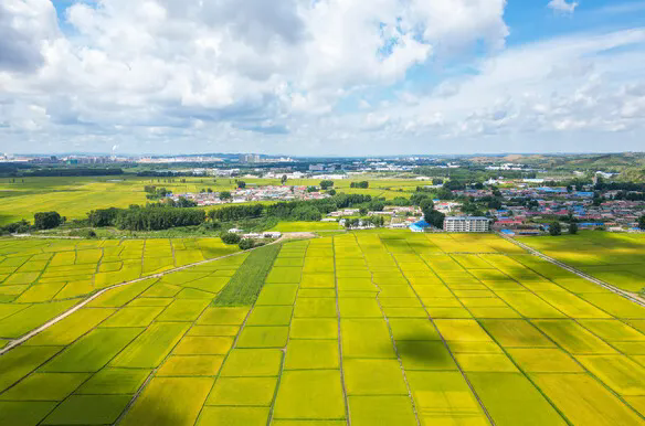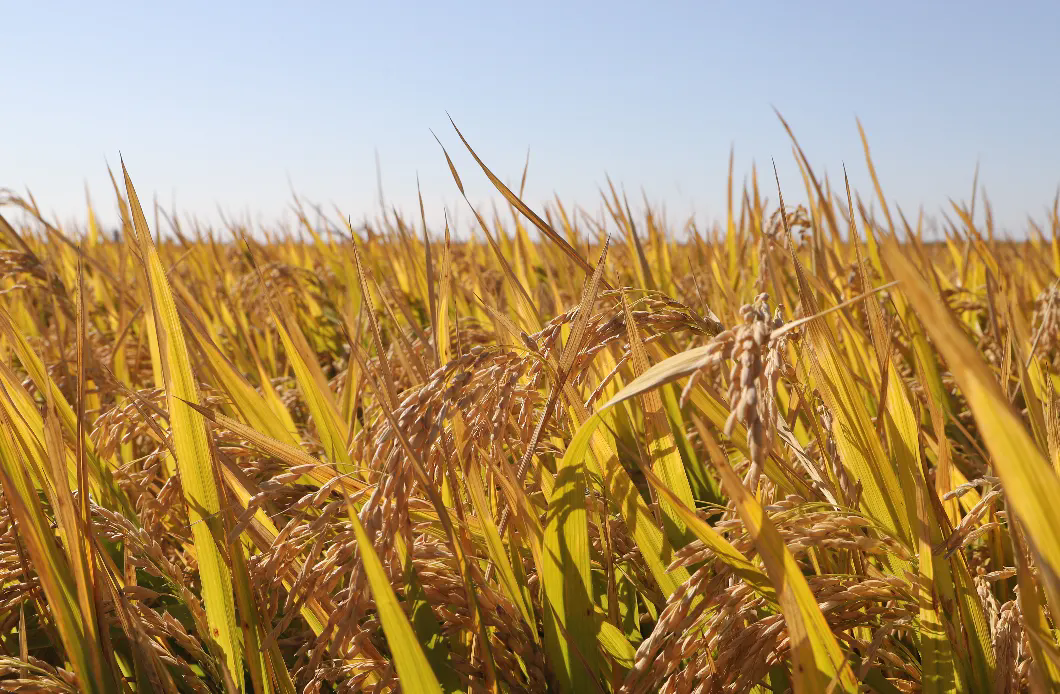 水稻田长势喜人,稻穗颗粒饱满、色泽鲜亮