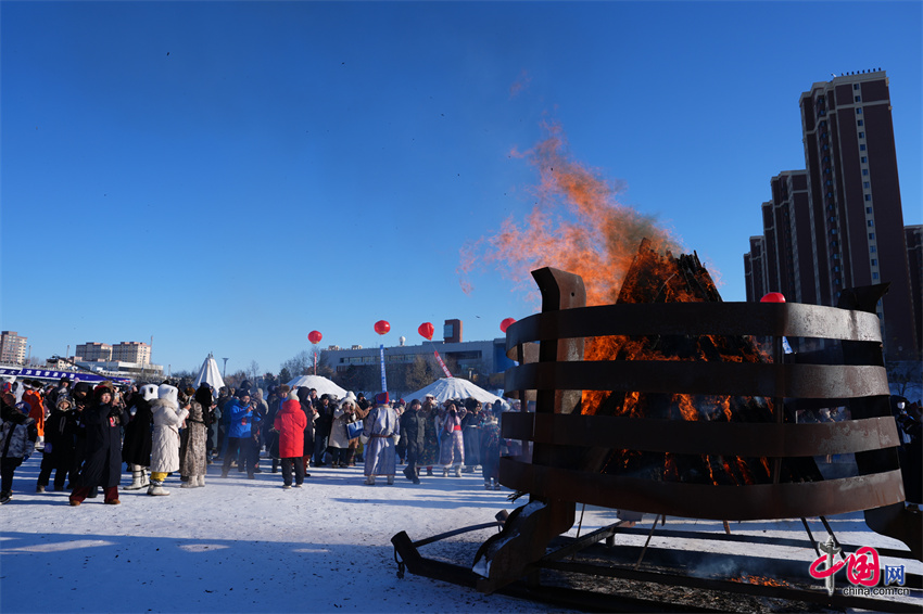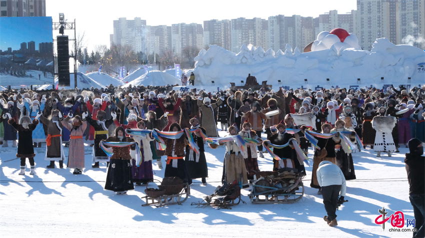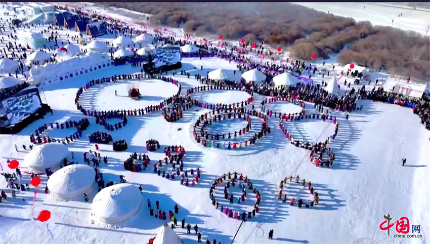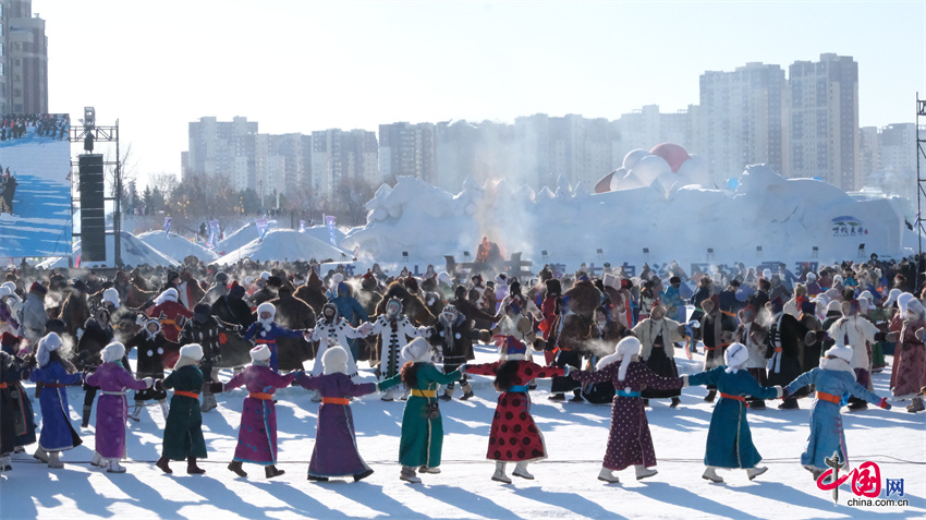 冬,凛冽而至。北疆大地零下30度的银色呼伦贝尔,却上演了一场热“雪”沸腾。熊熊燃烧的篝火边,眉目含霜,华服璀璨,手牵手的草原儿女舞出了一个巨大的“同心圆”,向大江南北发出一封热情的请柬!一场融合传统与现代,连接过去和未来,凝聚民族情谊的冰雪盛典,在冬日的呼伦贝尔盛大启幕。