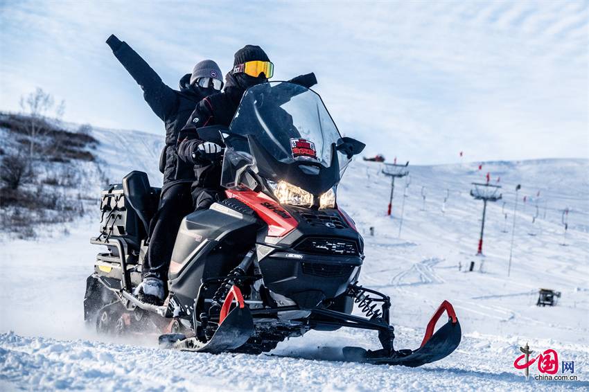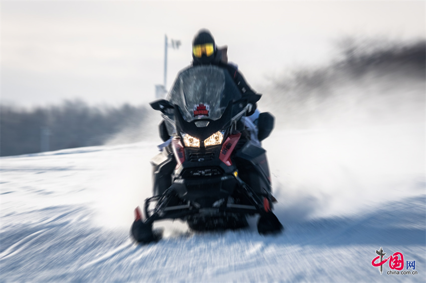 2025年12月22日,游客在牙克石凤凰山景区驾驶雪地摩托,体验在林海雪原间穿梭的速度与激情