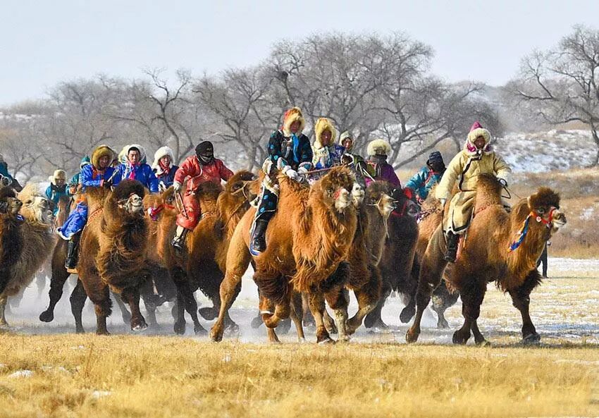 骆驼选美比赛、耐力赛和乘驼射箭比赛以及马超(冬季蒙古马超级联赛)比赛等传统项目,则将蒙古民族的骁勇与冰雪的激情融为一体。冬季那达慕,不仅是对体魄的考验,更是对草原文化坚韧生命力的礼赞。