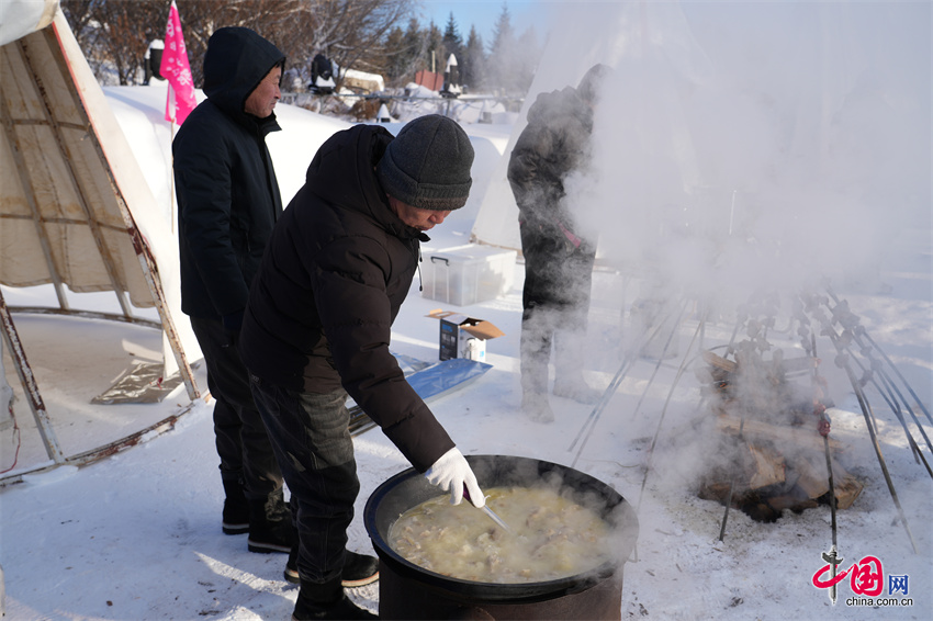 本届冰雪“伊萨仁”精心打造的多元活动矩阵,让热闹氛围贯穿全程,更让消费活力持续迸发:周边售卖热饮、特色小吃的摊位前排起长队,烟火气十足。红柳大串滋滋冒油、柳蒿芽汤香气醇厚,鄂伦春传统美食与东北地方风味齐聚,游客们大快朵颐,在舌尖品味地域文化的同时,直接拉动餐饮消费;“岭上好物”文创展示区内,桦树皮、兽皮等非遗制作技艺现场展演,游客们近距离观摩技艺、挑选手工艺品,非遗文创产品成为消费新热点,让传统文化转化为实实在在的经济价值。