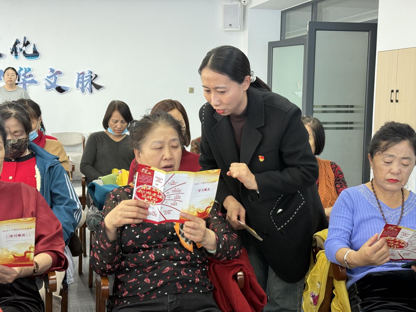 “益·身边人”巾帼宣讲员为社区居民发放宣讲折页,开展微宣讲