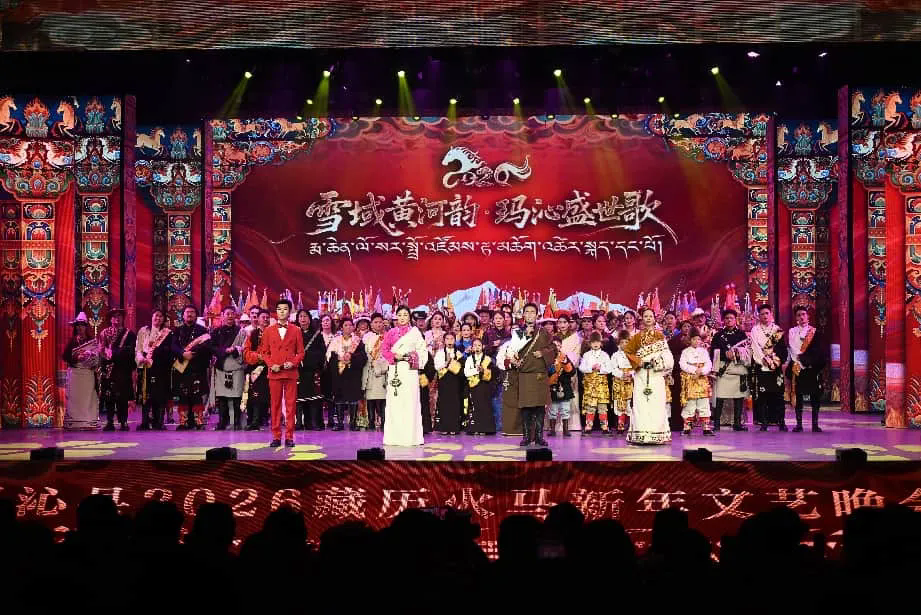 1月12日,青海省果洛藏族自治州玛沁县大武镇格萨尔影剧院灯火璀璨、暖意融融,“雪域黄河韵·玛沁盛世歌”2026藏历火马新年文艺晚会圆满完成录制,州县领导、特邀嘉宾与各族群众共叙深情,共迎藏历火马新年到来,现场洋溢着喜庆祥和的节日氛围。