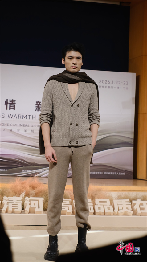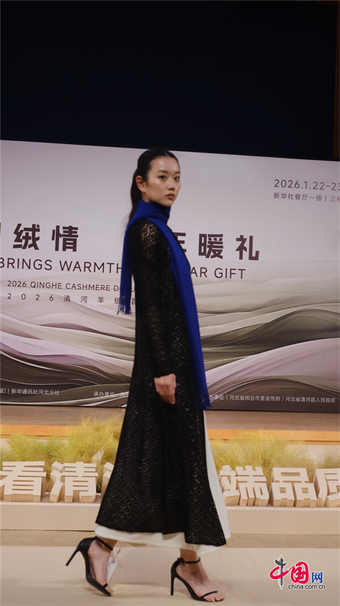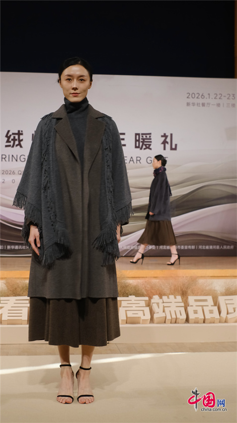 本次活动集中展示了来自河北清河羊绒企业生产的羊绒大衣、羊绒西装、羊绒衫、羊绒披肩、羊绒围巾等8大类、上千件羊绒制品。在“新品发布”走秀环节,红太羊绒、新华羊绒、启超羊绒、衣尚羊绒等15家清河羊绒领军企业携最新研发的2026精品力作惊艳亮相,全方位展示了清河羊绒在原创设计和新品研发、新材料应用等方面取得的丰硕成果和强大产业实力。