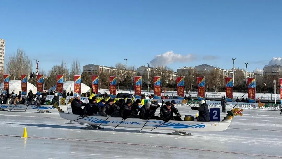 冰上龙舟作为传统龙舟的创新与延伸,既保留了传统龙舟的仪式感与精神内核,又融入了草原冰雪运动的地域特色。“我们之前训练都是在水上,水龙和冰龙的发力点不一样,但是都需要技巧和力量。”广东肇庆金联体育龙舟队队员连明剑介绍。